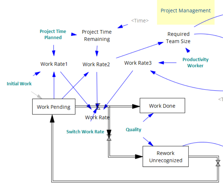 Project dynamics - Accounting for re-work cycles and variations in team size
